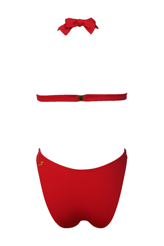 בגד ים שלם מחטב עם מחשוף וקשירות - בורדו מבריק