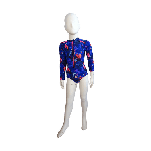 בגד ים שלם ילדות שרוול ארוך מינימי - הדפס טרופי