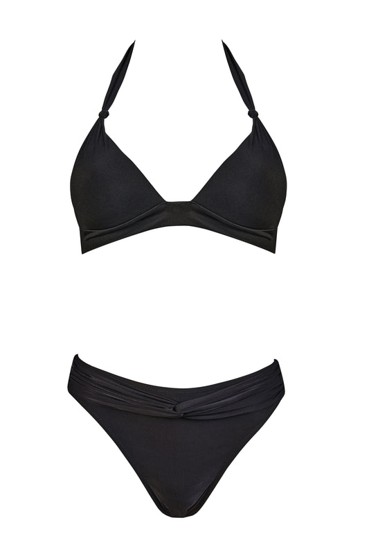 טופ ביקיני קולר פושאפ עדין - שחור מבריק