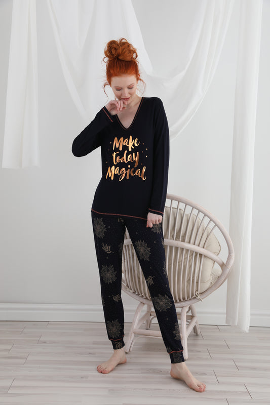סט פיג'מה איכותי - פיג'מה רכה ונעימה 95% ויסקוזה - Make Today Magical