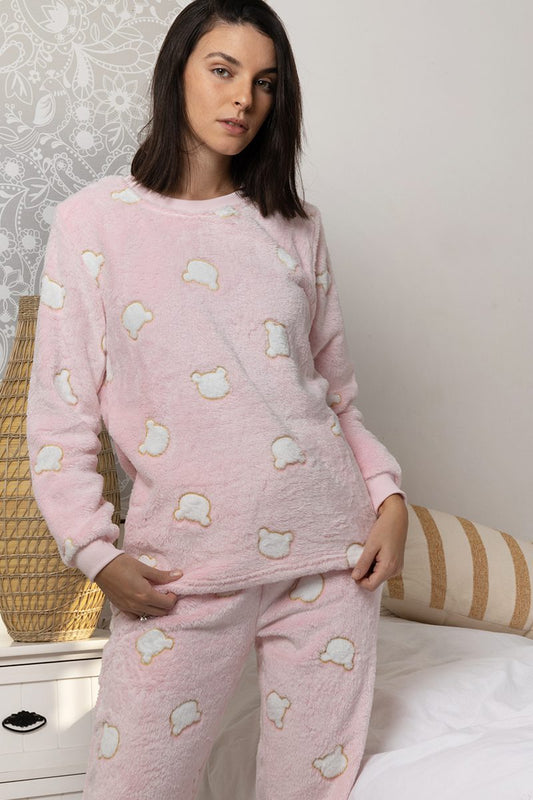 פיג`מה נשים\נערות פליז דובי - ורוד