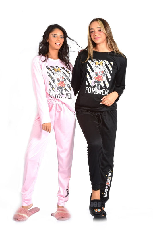 פיג`מה נשים\נערות FOREVER אפור\ורוד\שחור