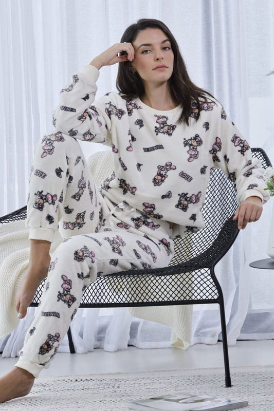 סט פיג'מה פליז(חליפת פיג'מה פליז) כבשה שמנת