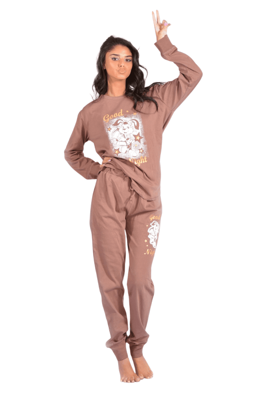 סט פיג'מה נשים 100% כותנה | פיג'מות נשים איכותיות - שחור / אפור / חום