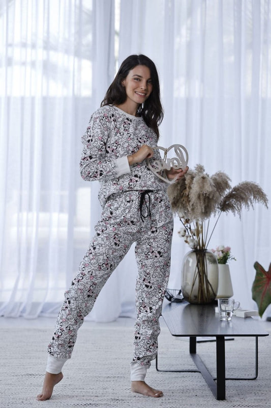 פיג`מה נשים\נערות 100% כותנה אינטרלוק שחור\אדום\אפור בהיר - ארנבת