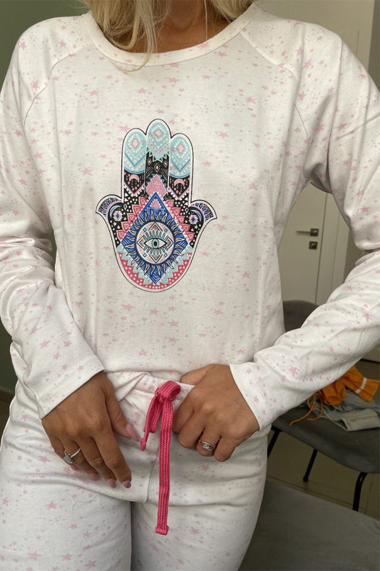 סט פיג'מה לנשים 100% אחוז כותנה - גו אנדר כוכבים ורודים - חמסה
