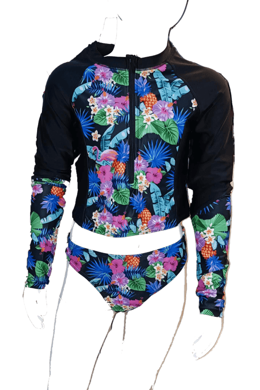 סט בגד ים לילדות חולצה עם רוכסן ותחתון