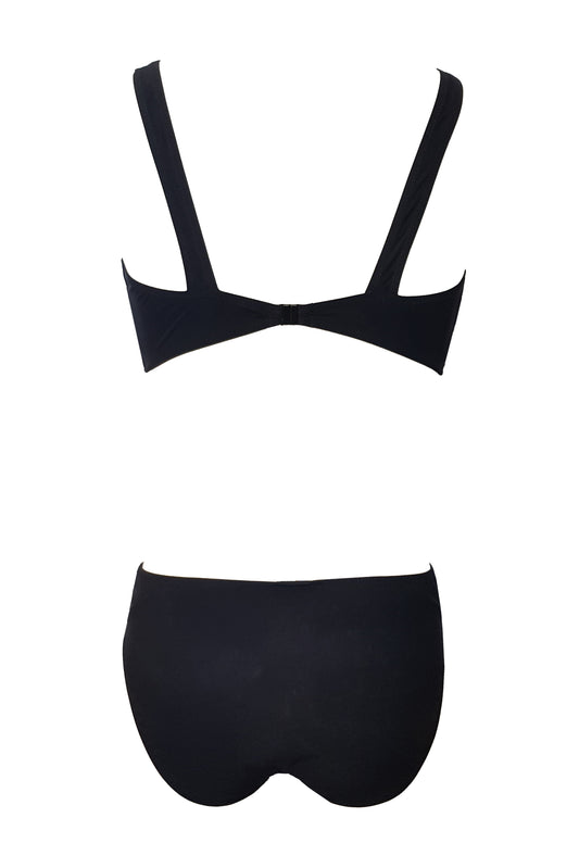 בגד ים שלם מונוקיני סטרפלס שחור והדפס מנצנץ