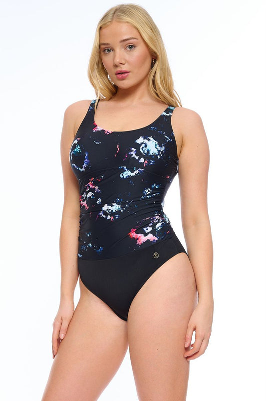 בגד ים שלם מחטב כיווצים קלואי - הדפס שחור