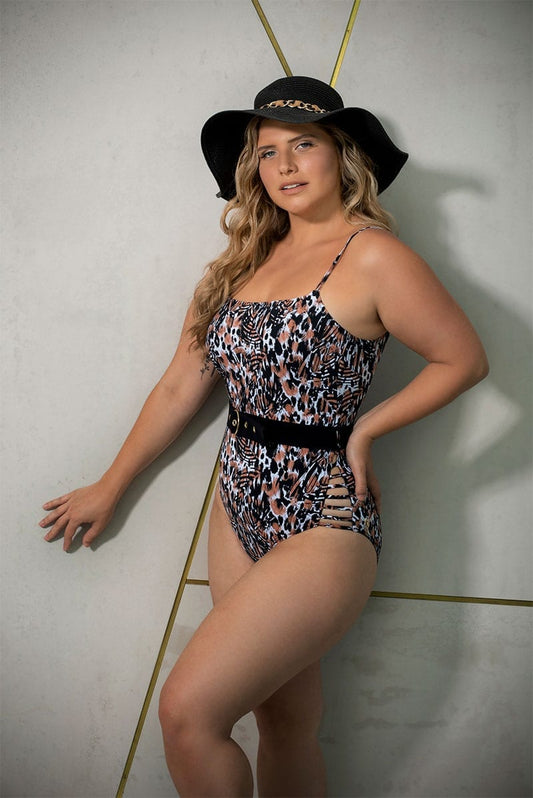 בגד ים שלם פלאס מחטב רגל גבוהה קריסטין - מנומר חום