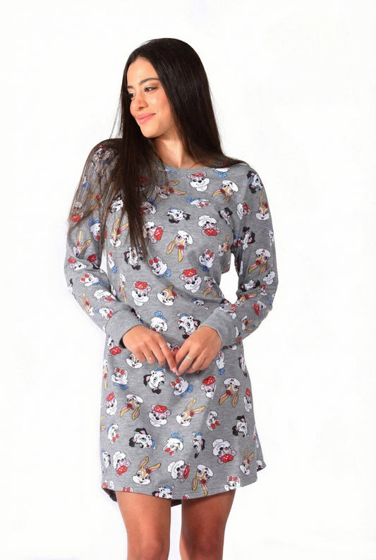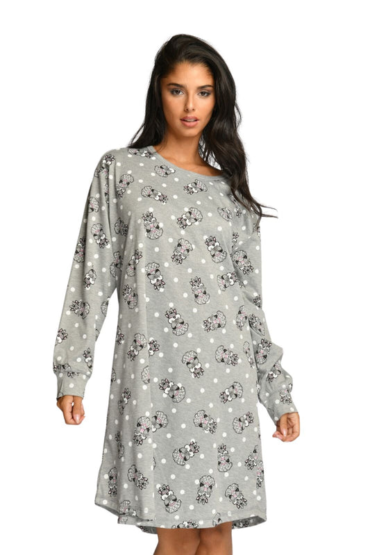 כותונת לילה נשים שרוול ארוך אפור\אדום