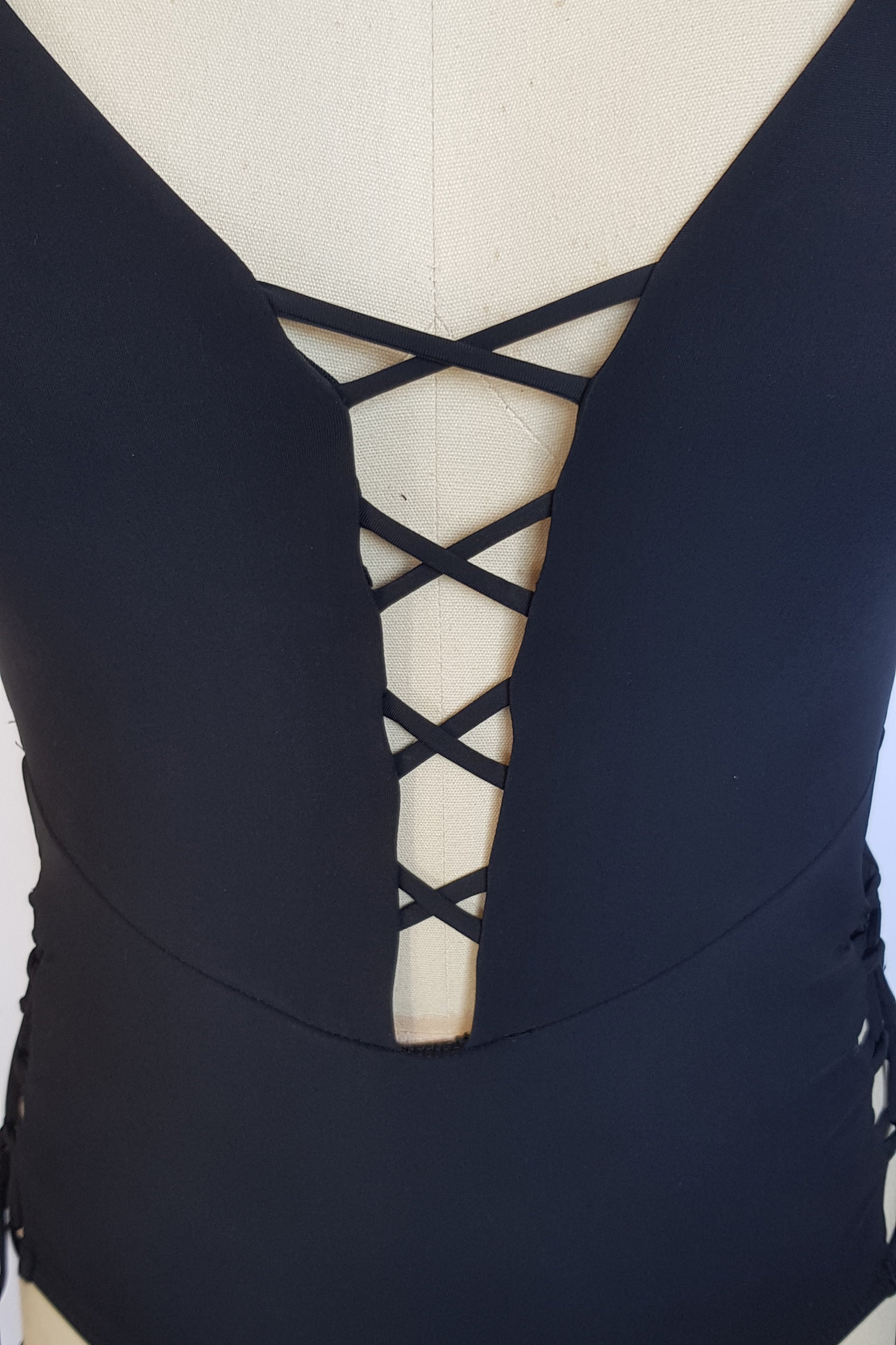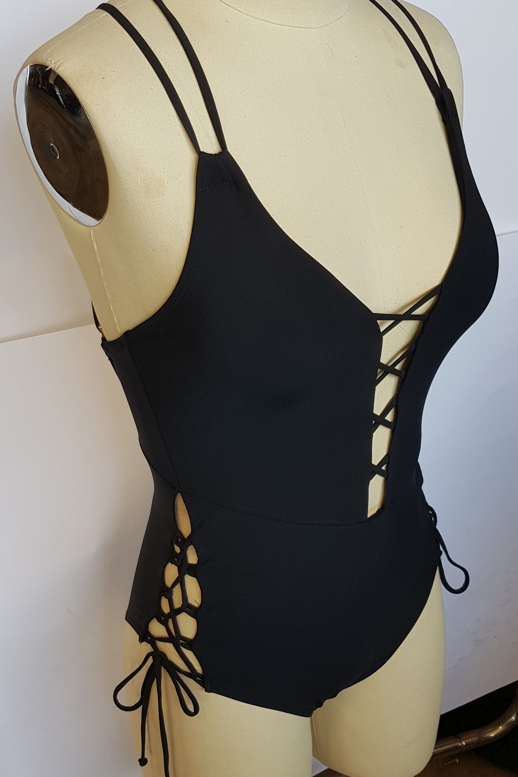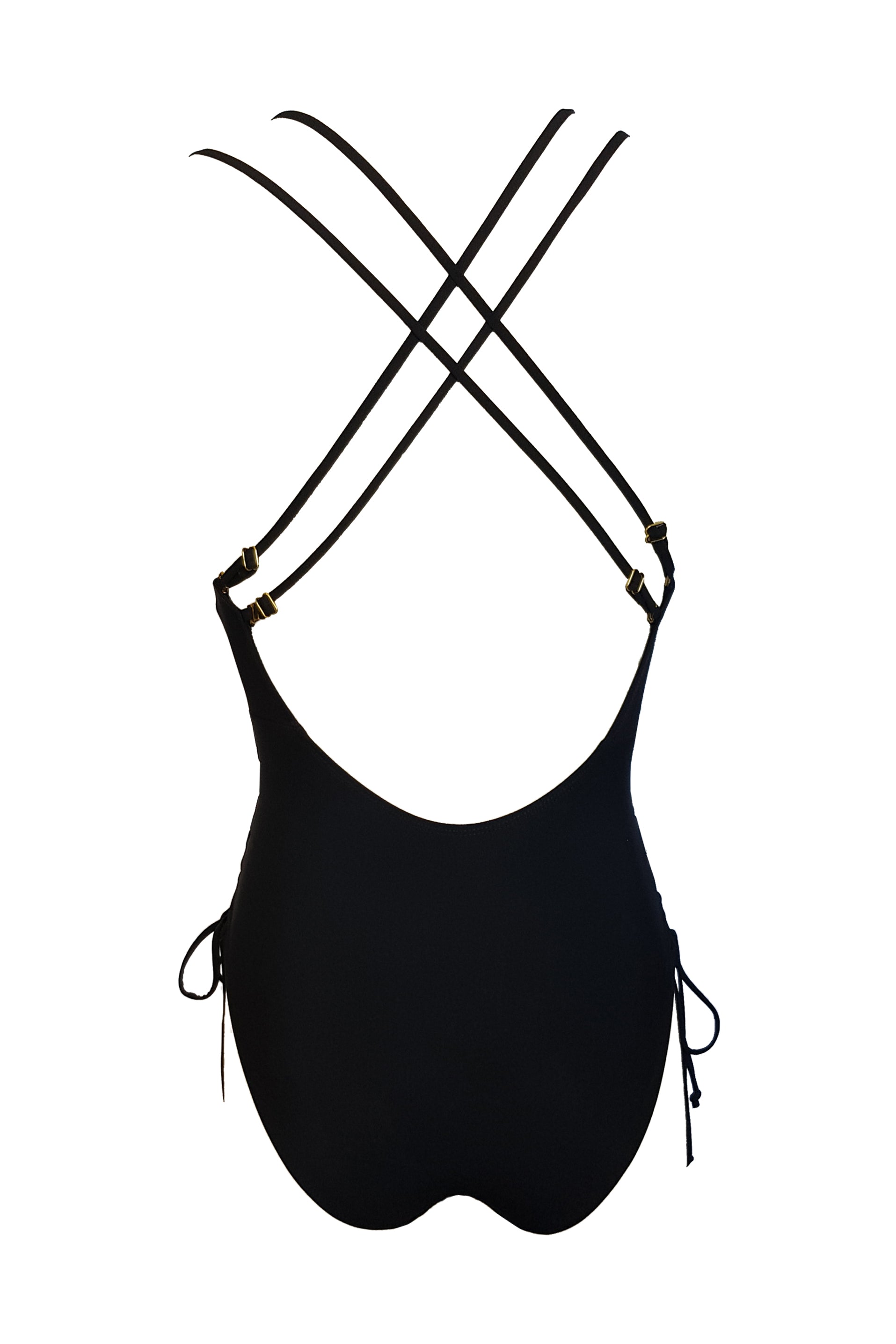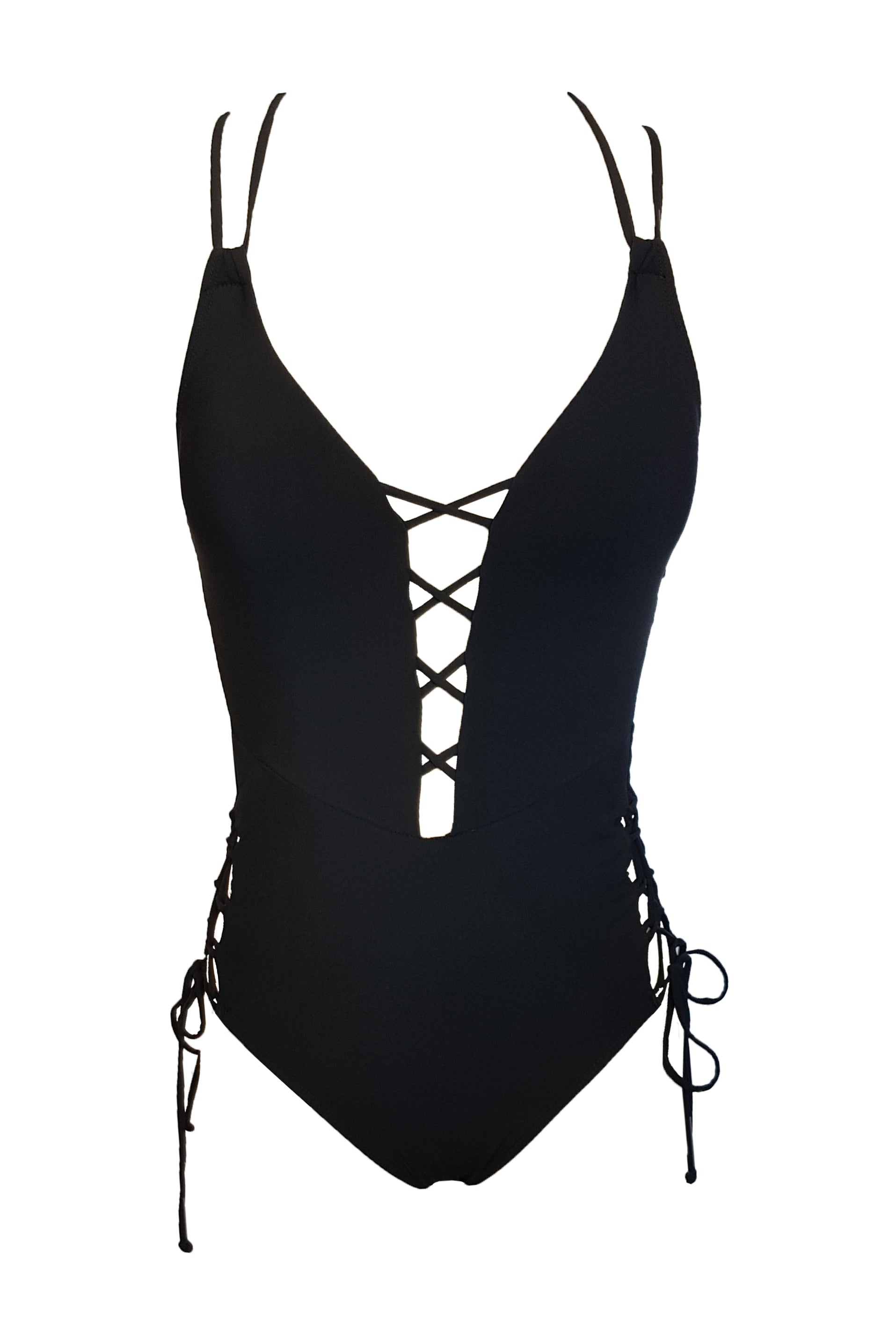 בגד ים שלם מחטב עם מחשוף קדמי וצדדי-ג'והנה שחור