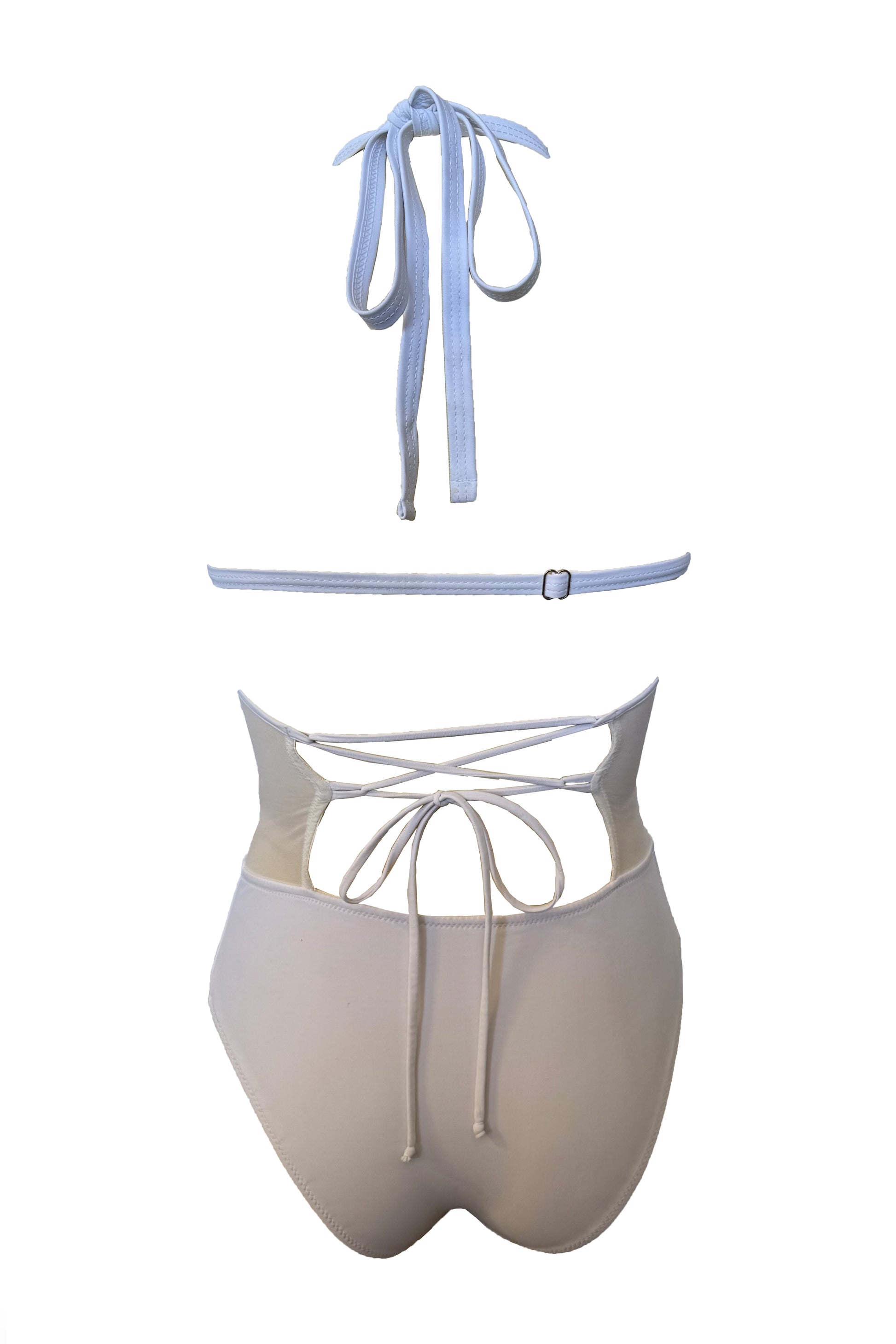 בגד ים שלם מחטב עם קשירת קולר. קאפ רך תפור, כתפייה מתכווננת בגב להתאמה מושלמת וקשירת איקס להתאמה וחיטוב.