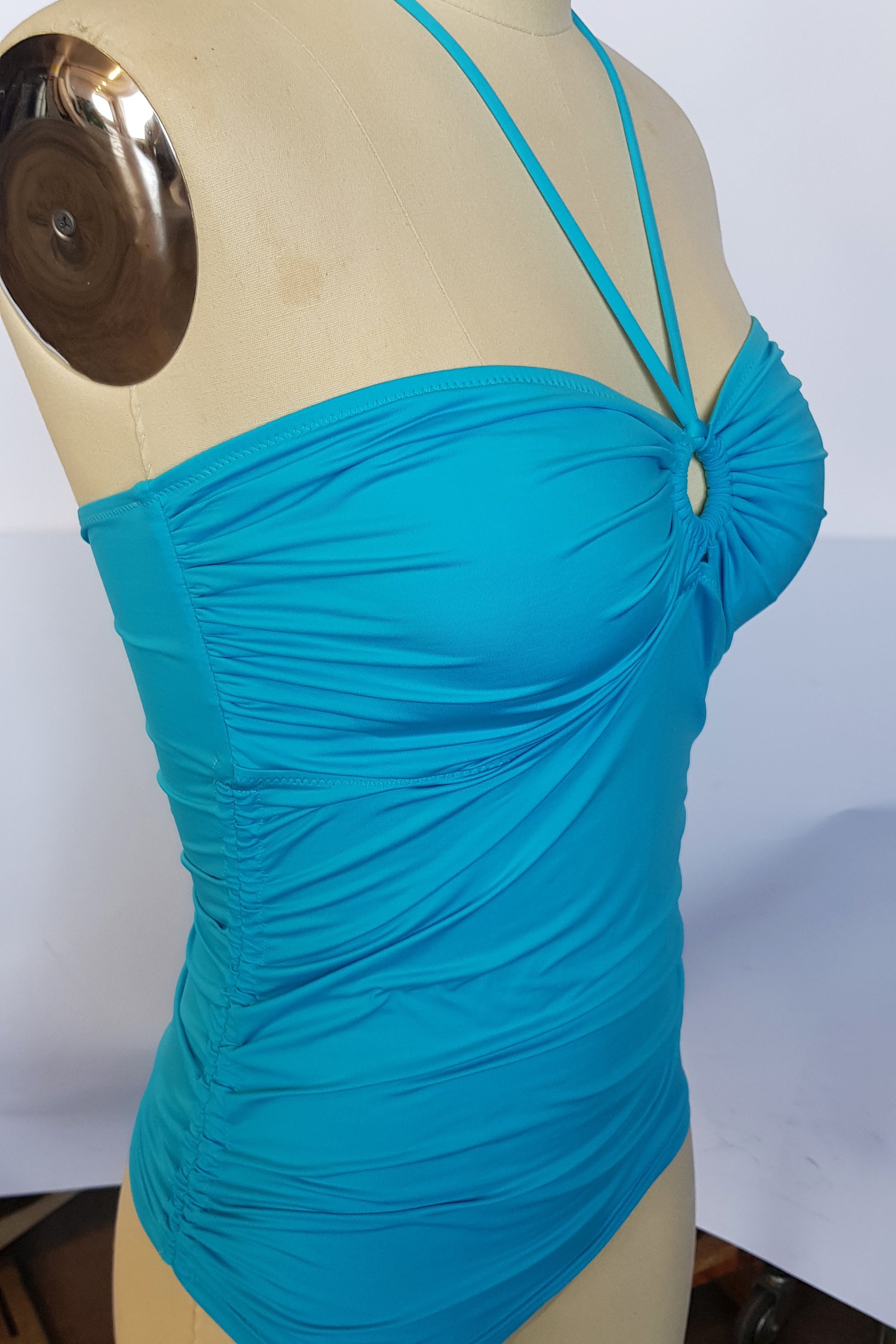 גופיית טנקיני עם כיווצים בצדדים וטבעת באמצע .