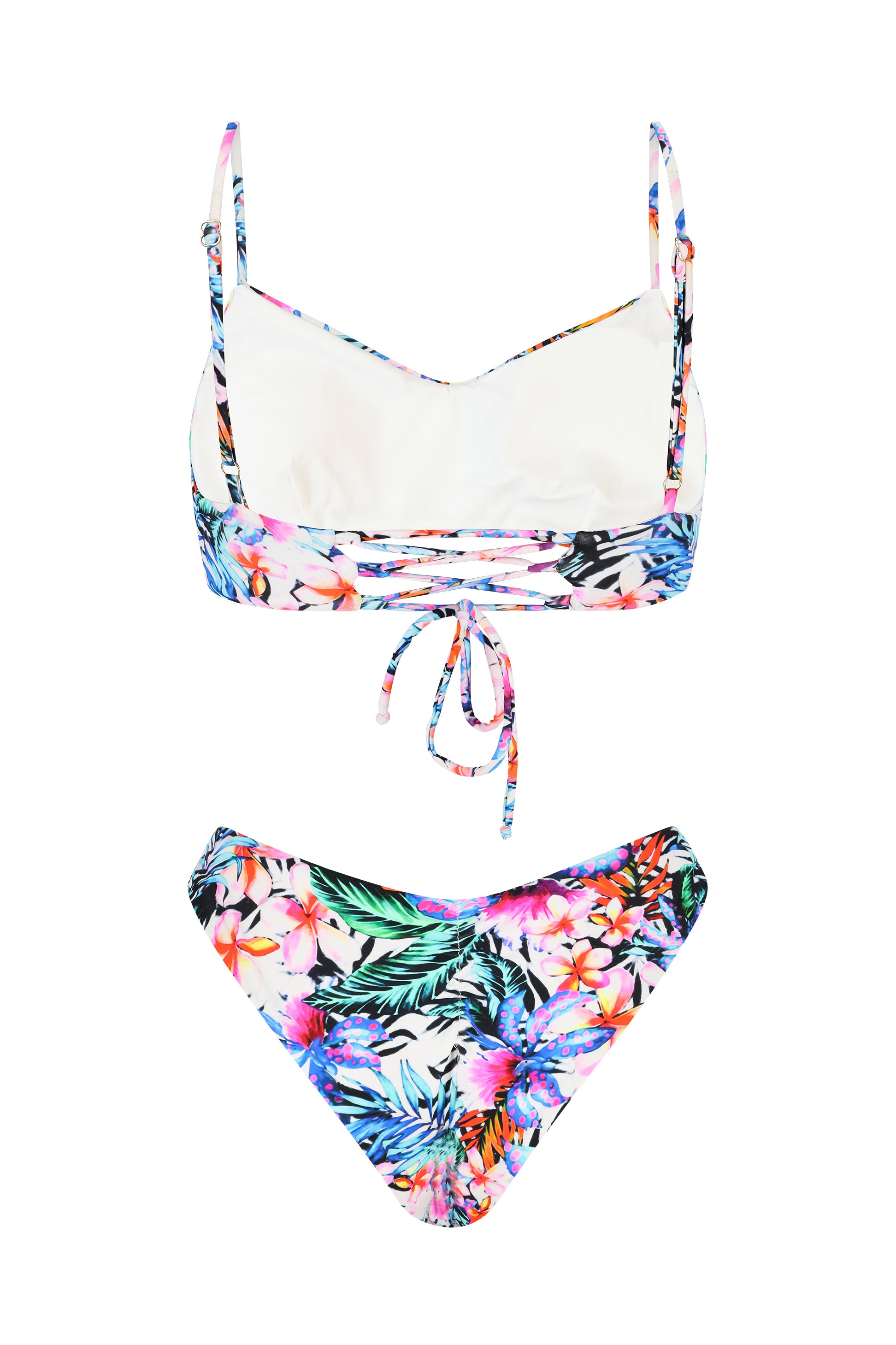 טופ (חזייה) ביקיני בגזרת גוזייה, נקי ללא תפרים חיצוניים, עם קשירה קרוס אובר בגב, כתפיות מתכוננות וקאפ עדין ונשלף.