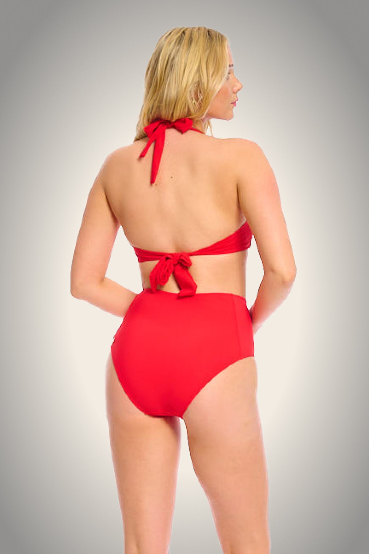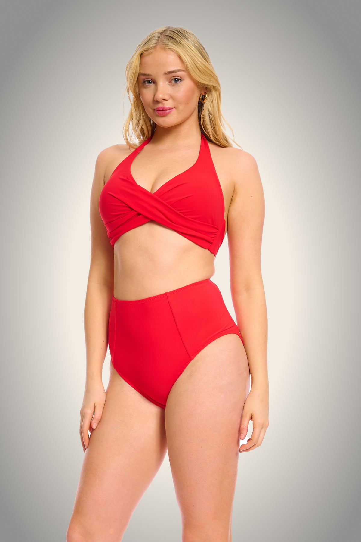 סט ביקיני מעטפת פיראוס תחתון גבוה מחטב - אדום