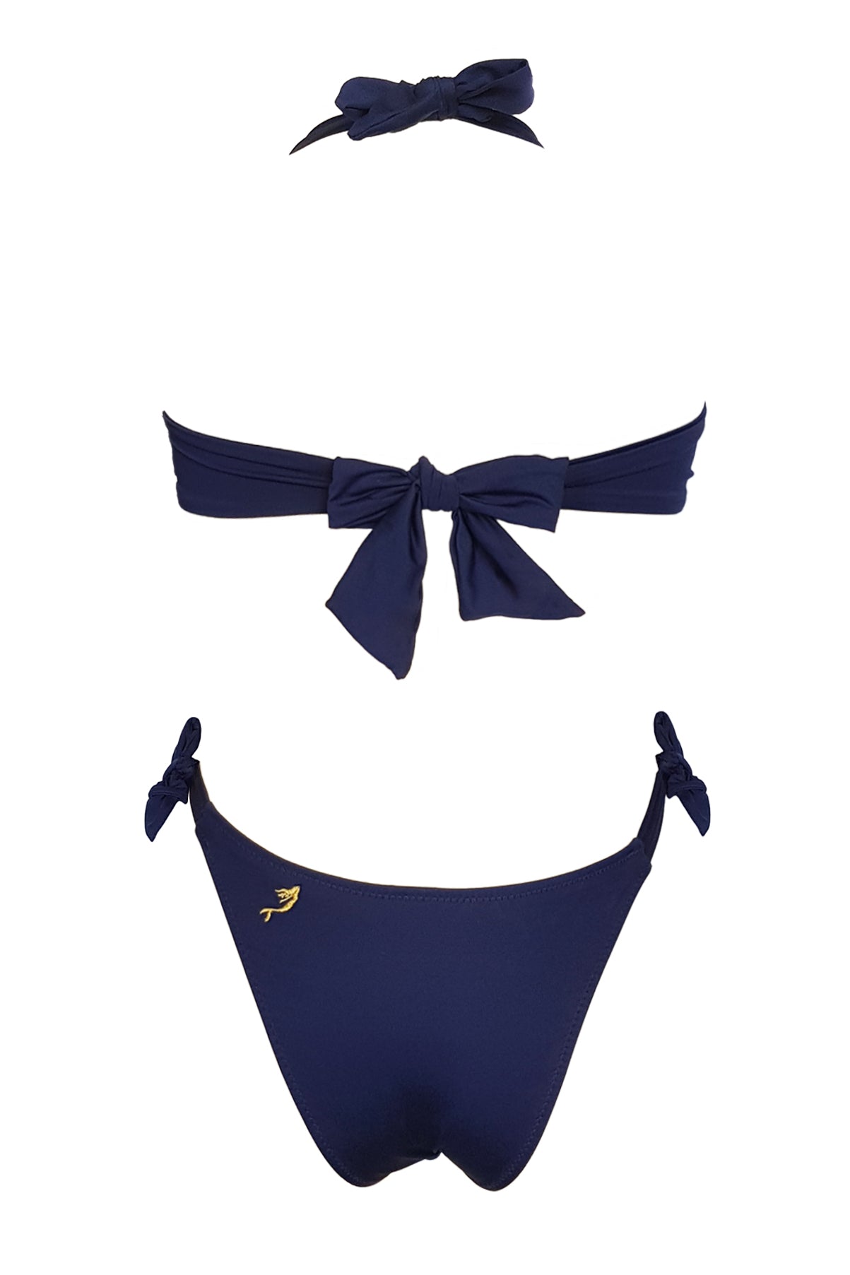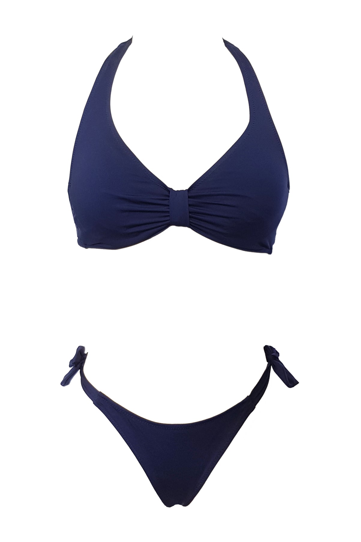 סט ביקיני המורכב מחזיית ביקיני קולר כחולה תומכת גם בחזה גדול עם ברזל סמוי.