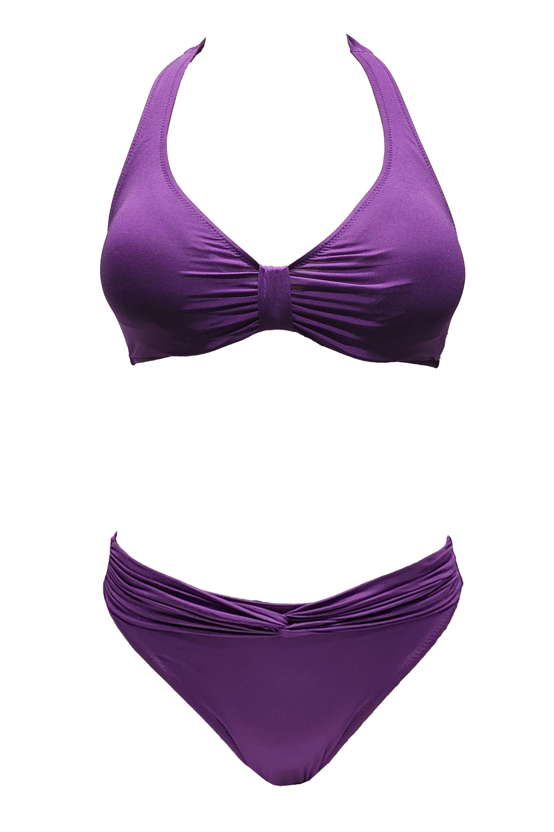 חזיית ביקיני קולר כחולה תומכת גם בחזה גדול עם ברזל סמוי.