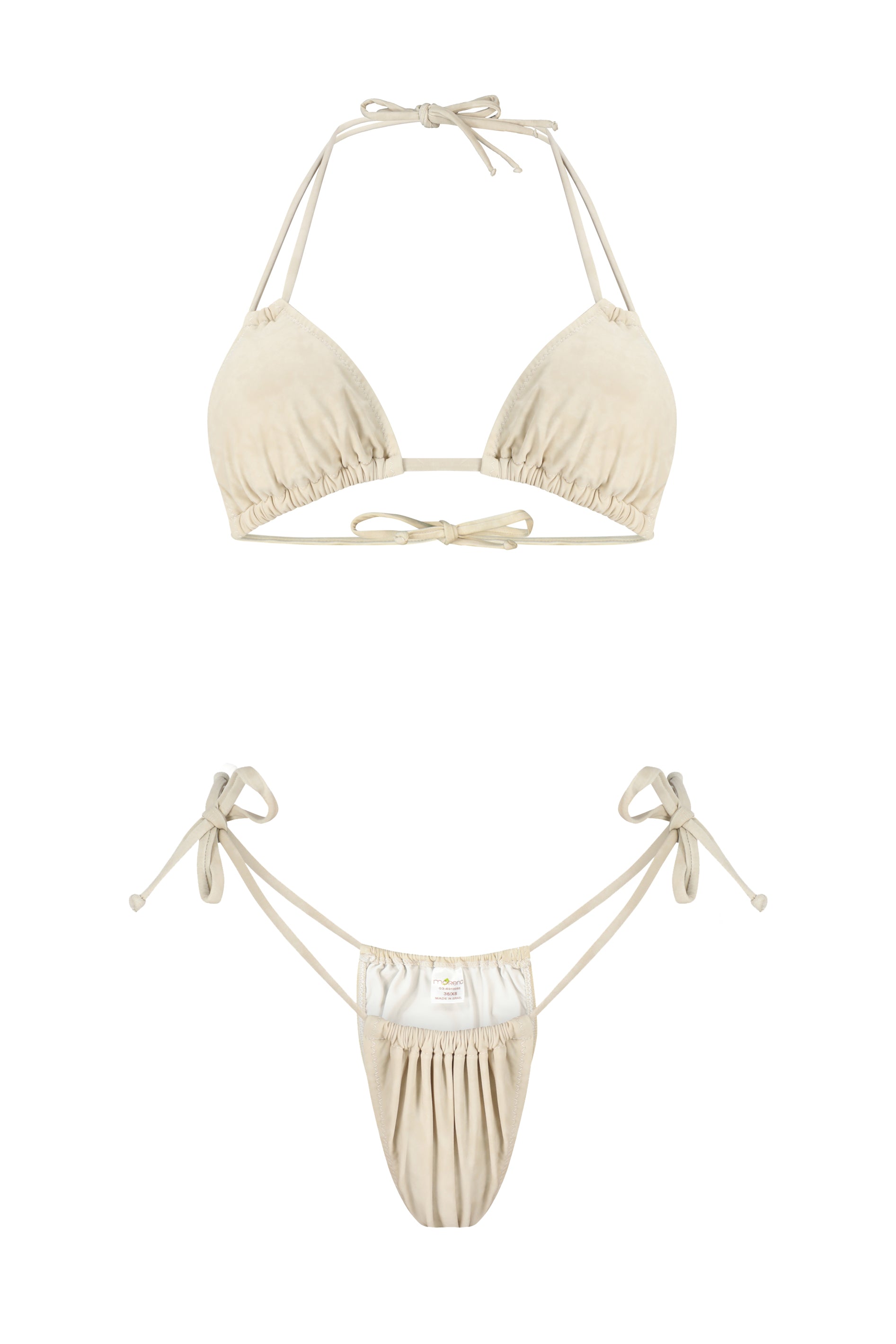 סט ביקיני משולשים עם קשירת קולר וקאפ נשלף.
