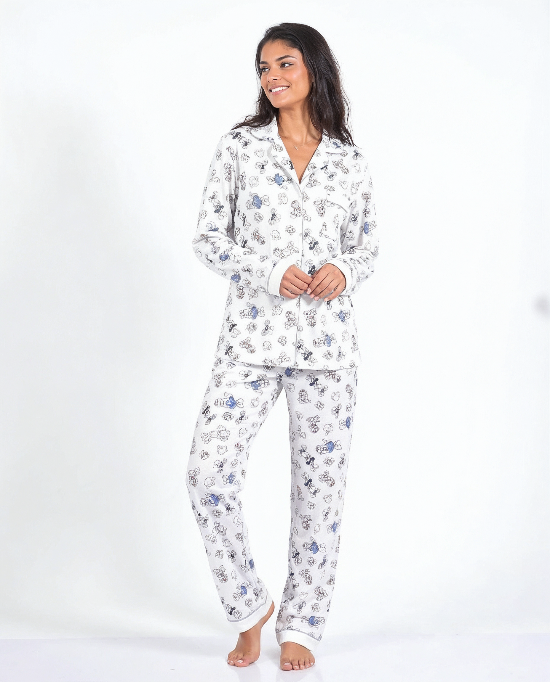 פיג`מה מכופתרת נשים\נערות לבן\ורוד\אפור